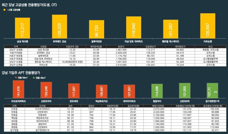 강남권 고급 상품 아파트와 가치 비교