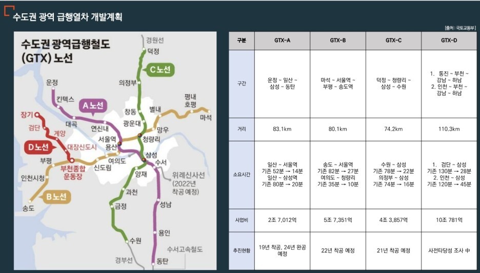 GTX로 수도권 이동 편의성 상승 및 완공 이후 경제적 이익 30년간 총 53조 원의 경제효과 예상