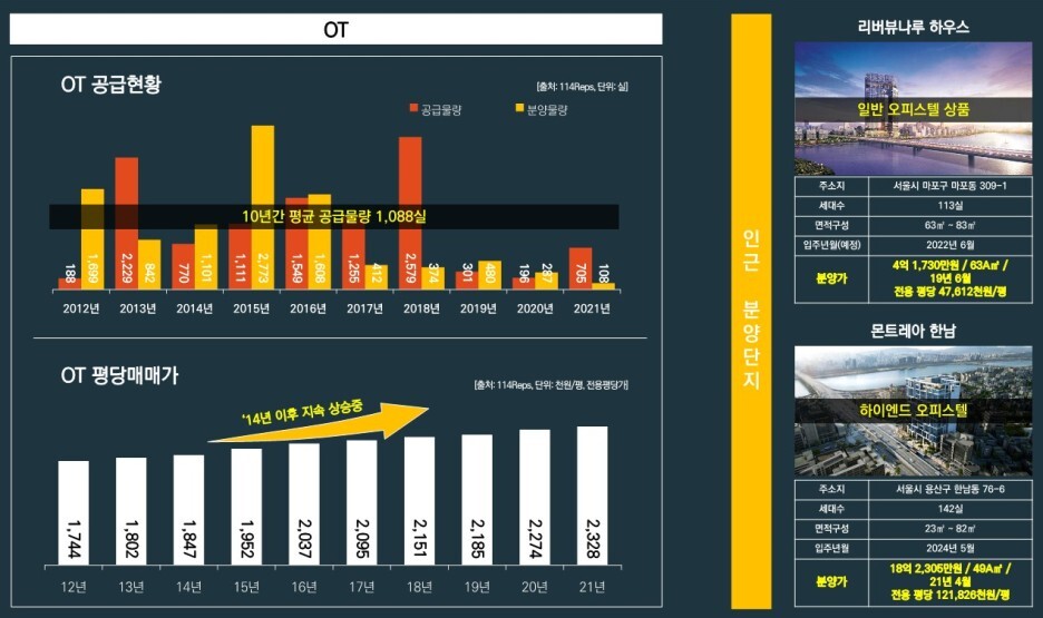 오피스텔 공급물량 또한 10년 평균 1,088실로 5년간 평균 이하 공급되었으며 전용 평당가 지속적 상승 중